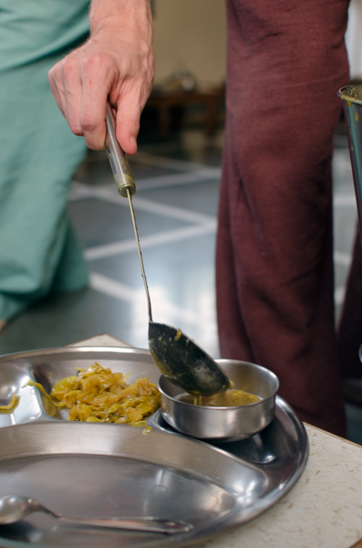 It had a great reputation for a more rigorous and faster-paced yoga style than the traditional Hatha yoga found in most Indian ashrams. Many people visit Rishikesh for a spiritual experience, however my main goal was a week of intense fitness and healthy eating. One of the benefits of staying in an ashram is that meals are usually included. There is a fixed menu that is usually hearty and healthy. The food at Anand Prakash was great – loaded with veggies and second helpings always available.