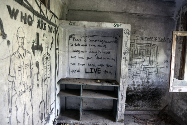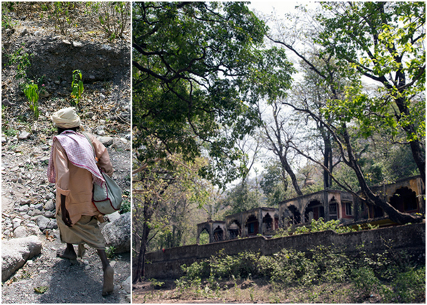 The walls of the ashram are crumbling and we were able to easily sneak inside.
