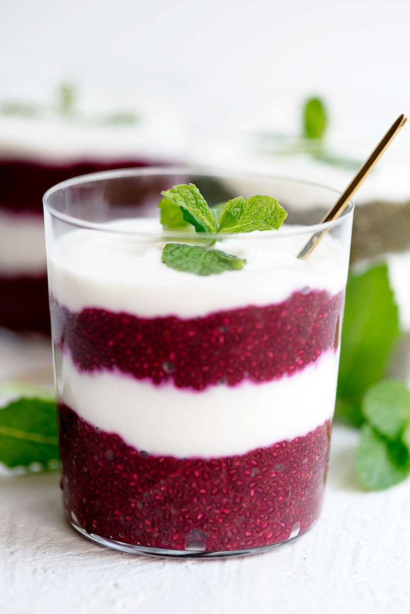 The trick to picking out glassware that will photograph well is looking for thin walls. Delicate glassware looks better in photos as you don’t get any discoloration or distortion of the food. That doesn’t mean it has to be expensive though! I bought my glasses at Daiso, which is a Japanese discount store. Each glass was only a couple of dollars. Williams-Sonoma also has a gorgeous set of thin-walled cocktail glasses.