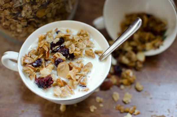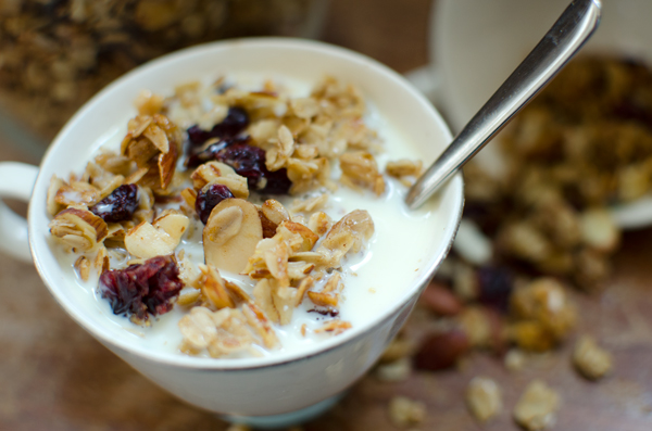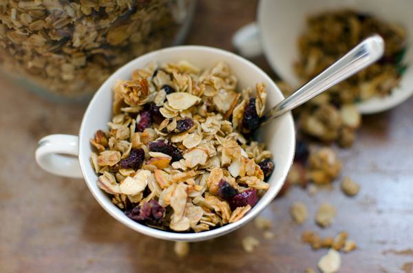 This cherry and almond granola recipe is the first official recipe that I have made in our new kitchen – which is huge and filled with amazing modern appliances and lots of counter space, by the way! I love making my own granola – it’s so versatile and you can tweak any granola recipe easily based on what is in your pantry. I used cherries and almonds, but you could just as easily do blueberries, or raisins, or apricots, or pecans…