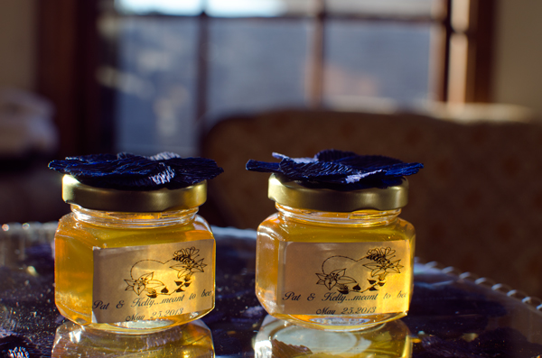 One of the best things about our wedding if that all of my friends and family came together to bring all of my DIY wedding ideas to life. These decorated honey jars party favors were a last minute DIY after my dad, who is a beekeeper, surprised me with these mini honey jars with his own honey! He even created the cute/hilarious labels that say “Pat + Kelly, Meant to Bee” with our wedding date on them. Thanks Dad!