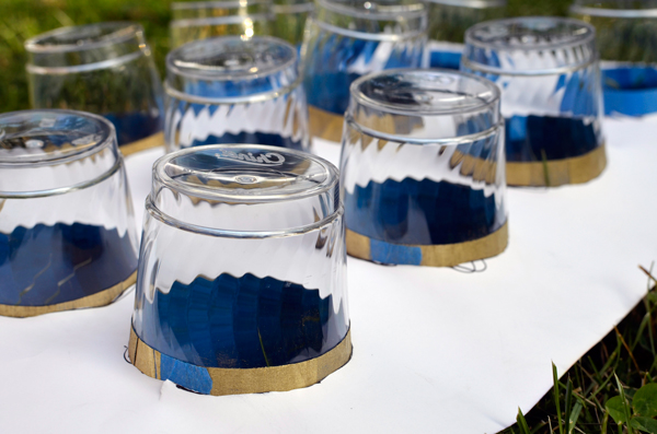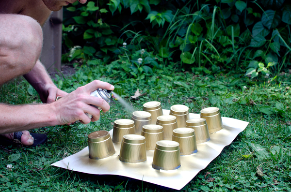 The key is to make them large enough so the cups sit with tape above and below, but not so large spray paint can get through. You don’t actually need gloves for this part, I just had them on from making the plates.