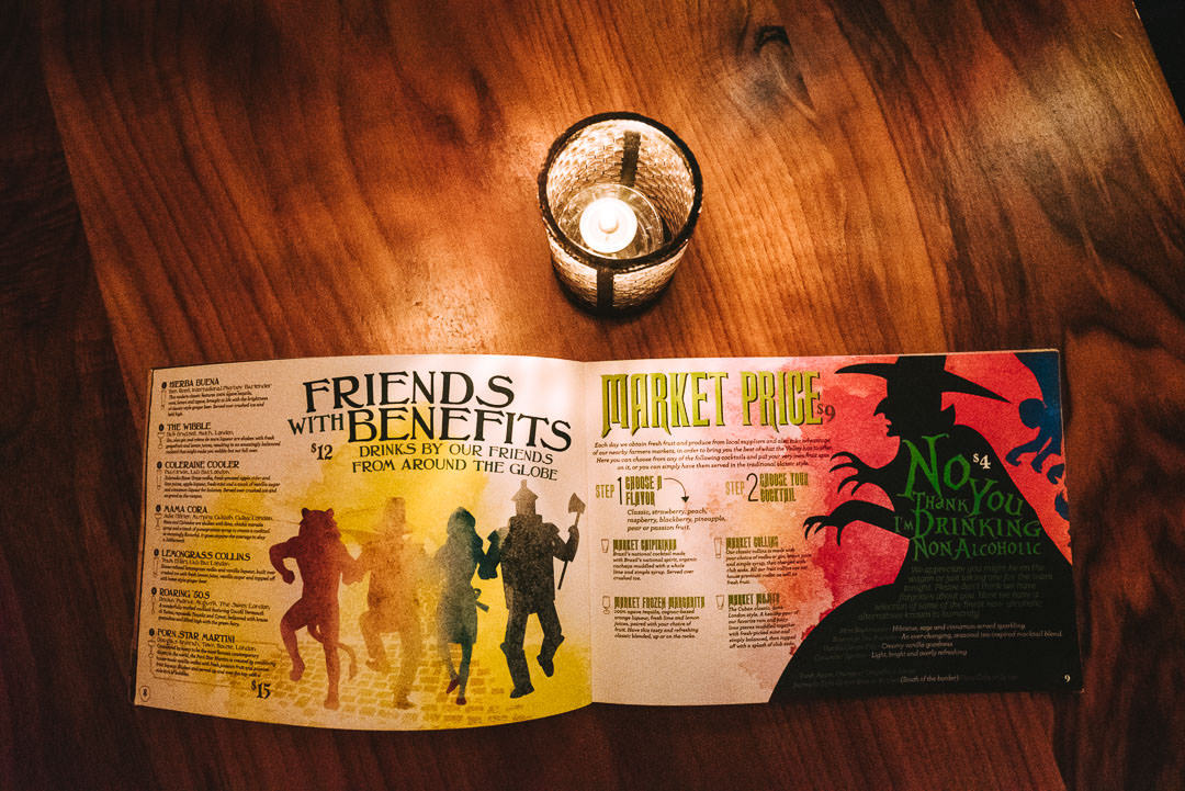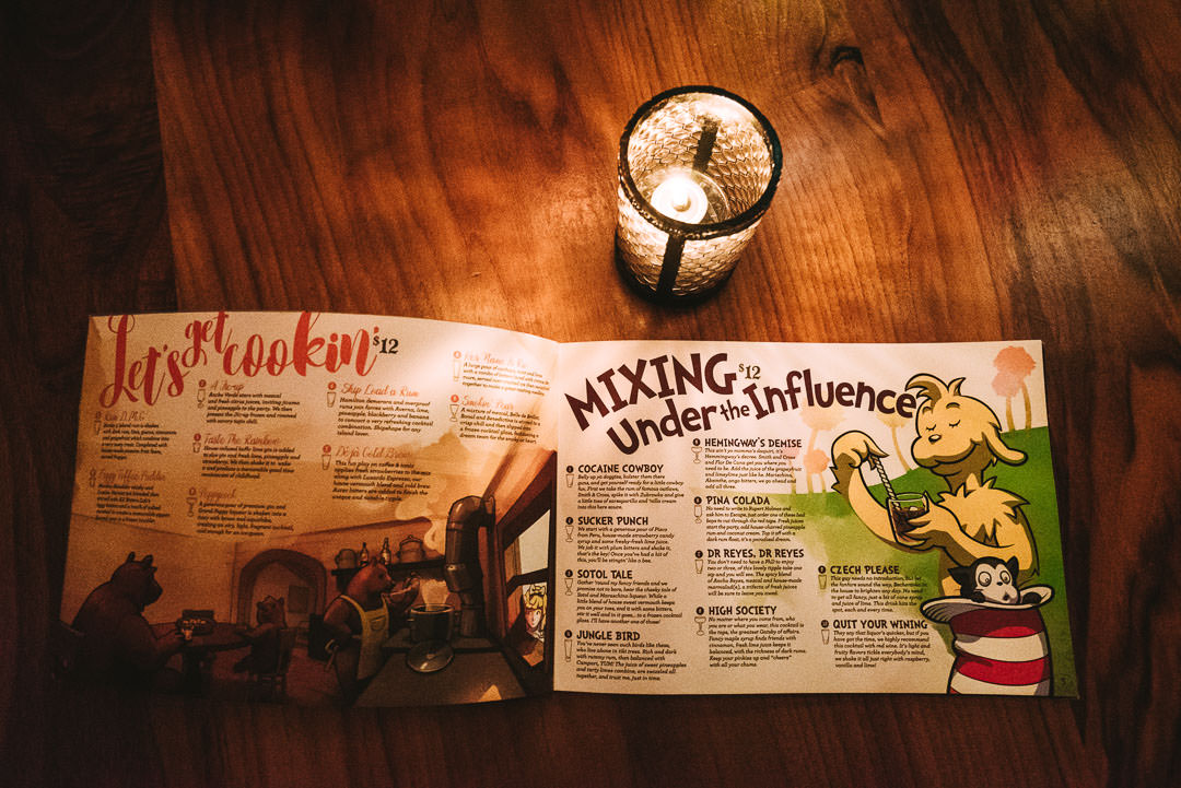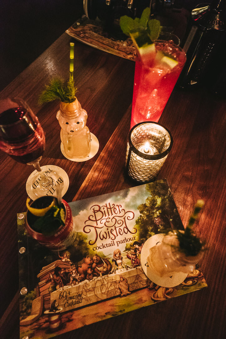 Speaking of menus, the menus themselves are works of art. Each is carefully illustrated and cleverly titled. While we were there, the theme was fairy tales. Every page was mesmerizing! You can see a few pages below. In an ironic twist, Bitter & Twisted is actually located inside the former Arizona Prohibition Headquarters. We didn’t eat there, but apparently they have a great food menu as well.