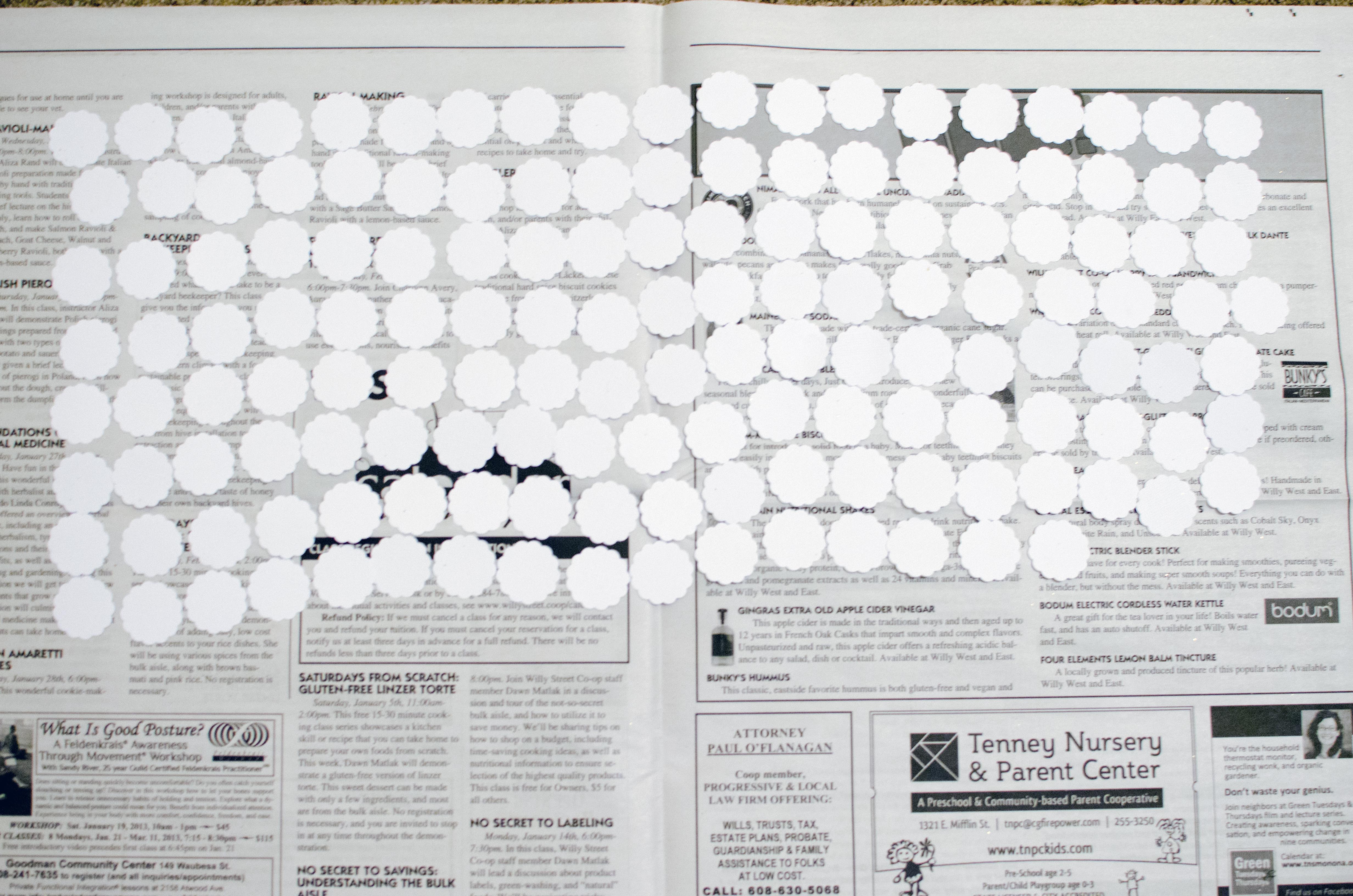 4. Line up your punched shapes onto the newspaper.