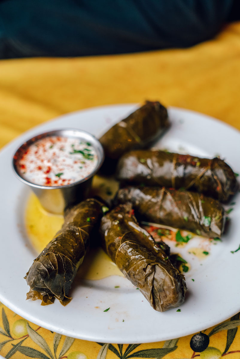 The food is just as memorable as the atmosphere! I just want to dive into their amazing hummus. They serve their dolmas warm, which is honestly the only way I care to eat them from here on out. They have great vegetarian options and claim to have the best baklava around. Make sure you make a reservation or get there early – every table was full as soon as they opened.