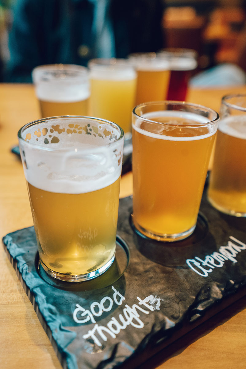While in Carmel, make sure you stop at Yeast of Eden for a beer tasting. They have two beer flights featuring all of their delicious and unique beer selections. Some are made in house and others are made by local breweries. If you like sour beers, this is your place! They do a lot of mixed fermentation, which means a variety of microflora like yeast and lactic acid bacteria in the brewing process. This gives beers an unusual sour taste. It’s really refreshing!