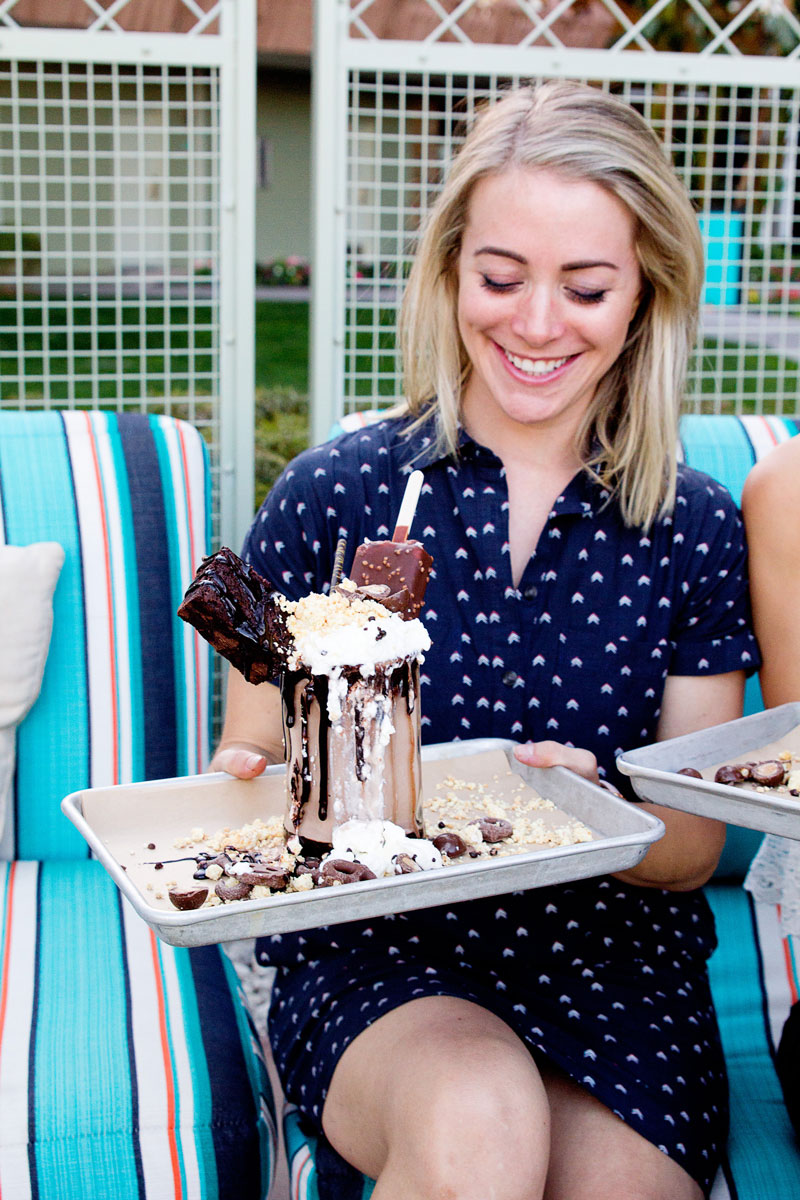 Hotel Valley Ho has two pools depending on what you’re in the mood for. The OHasis pool is lined with palm trees and lounge chairs making it perfect for relaxing. The OH pool is where the party is at and features cabanas, colorful retro pool furniture and poolside dining. This one was so much fun – any pool that has a cheesy mural backdrop that’s perfect for Instagram is a winner in my book. Pro tip: make sure you order the over-the-top Showstopper Milkshake from Cafe Zuzu while you’re there!