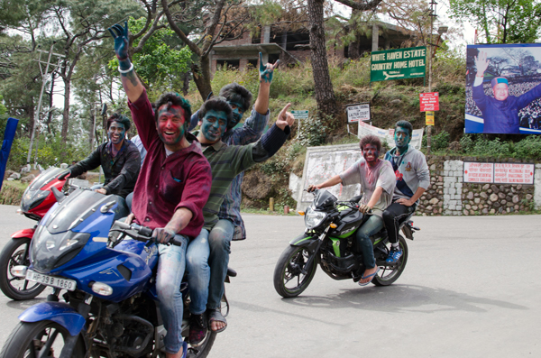 Things kicked off around 10:00, and at first it was just the occasional person walking by with a streak of color on their forehead. Then it was a few crazy guys tearing by on motorcycles with their whole faces powdered.