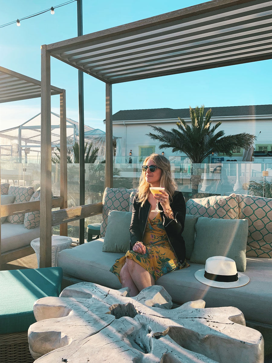 On top of Tanner’s Restaurant in Huntington Beach is one of the coolest rooftop lounges. Located overlooking the beach it’s amazing place to catch sunset and sip on a cocktail. We loved the beachy seaside vibes and the basket tree shading the bar.