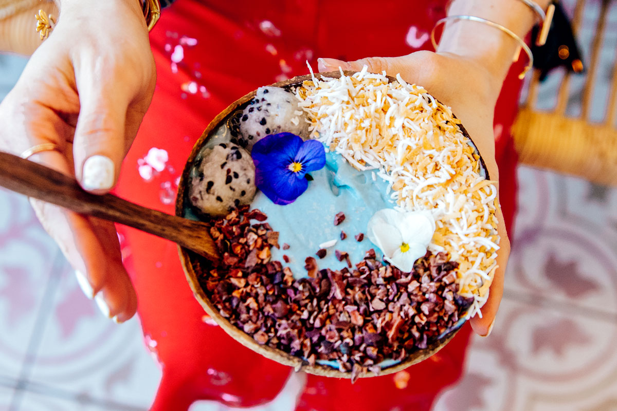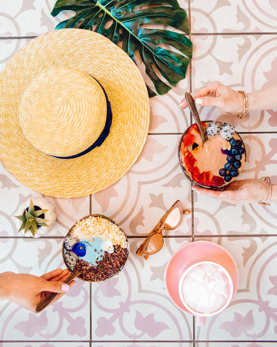 What to Order: The Lotus Pink Latte, Mango Turmeric Smoothie Bowl Santorini Smoothie Bowl