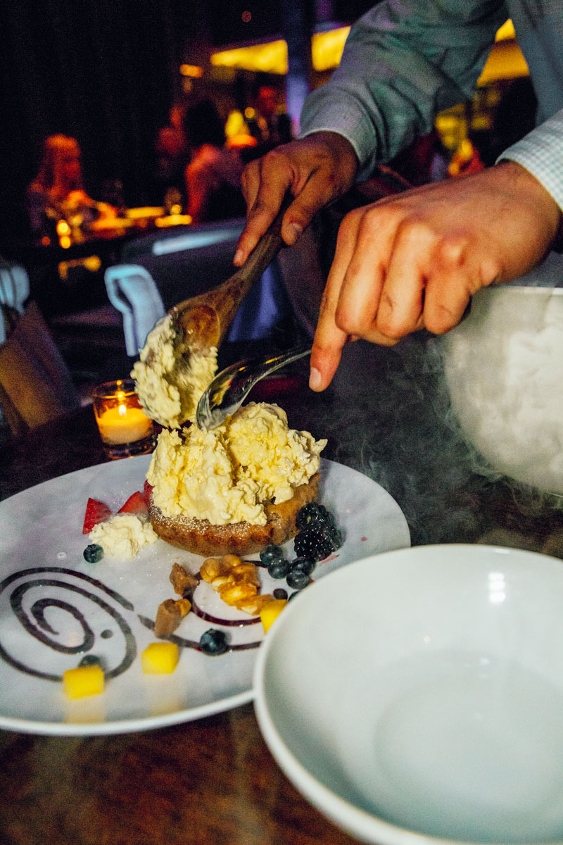 Save room for dessert. Ice cream is made right at your table using liquid nitrogen and served with a giant sparkler. You will be the envy of everyone around you with this show-stopping display.