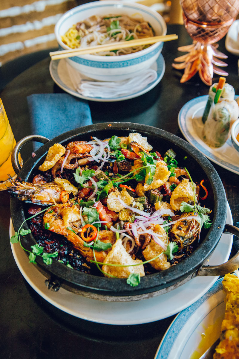 What to Order: Vietnamese Crepe (Bahn Xeo) with prawns and pork belly; Black & Red Rice with mussels, octopus, shrimp, scallop, sausage, confit pork and lime lead aioli; Chilled Jelly Fish with green mango
