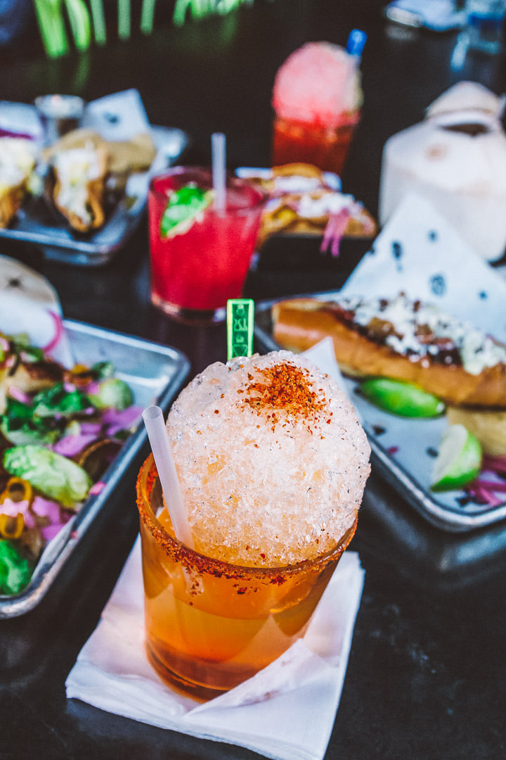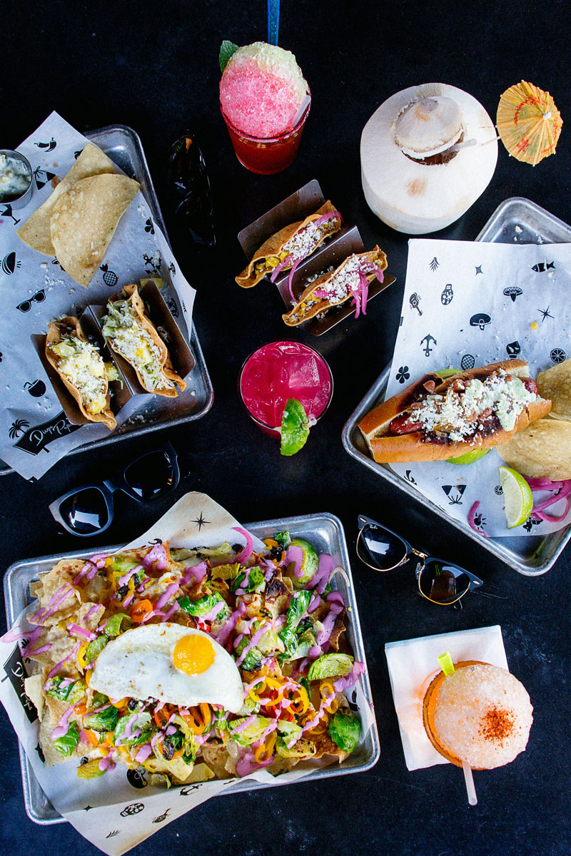 What to Order: Brussels Sprout Nachos, Sonoran Hot Dog (bacon wrapped all beef hot dog, pinto beans, grilled onion, mayo, avocado crema, cotija, brioche bun), Mango Elderflower Snowcone Margarita