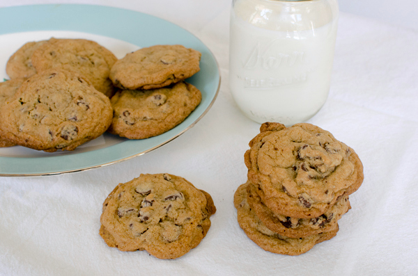 These cookies freeze well, so I made an extra batch to keep on hand when unexpected friends or guests drop by. Nothing says ‘welcome home’ like a warm, gooey chocolate chip cookie!