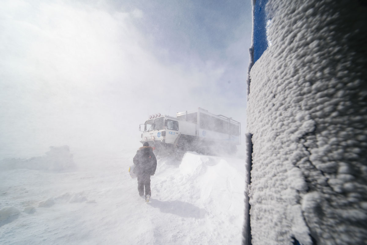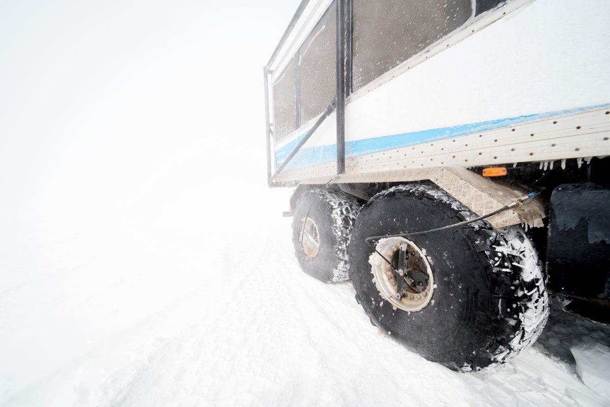 You’re picked up from your hotel and taken to base camp where you then change to a specially modified glacier vehicle that literally is a former cold war missile carrier. Just the wheels alone are taller than me, but that’s what it takes to get on to the glacier safely in even extreme conditions.