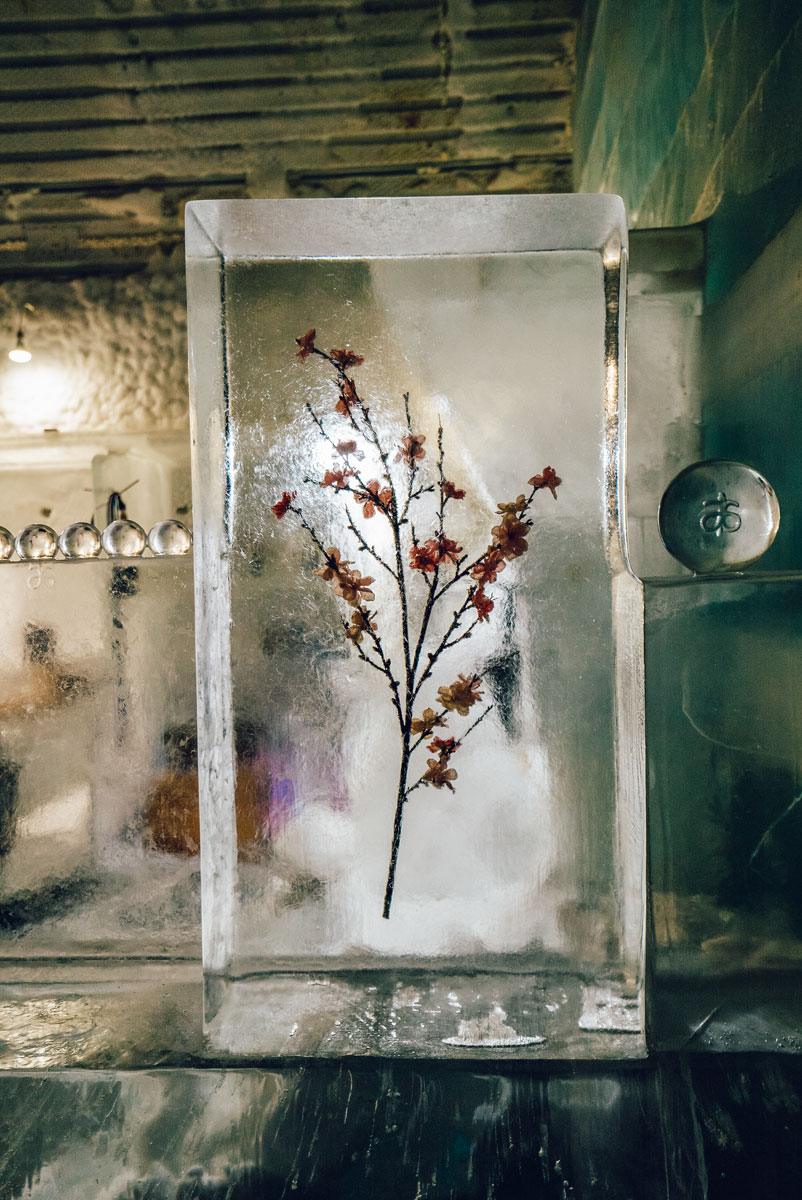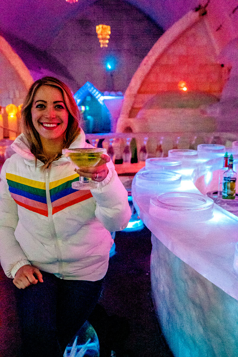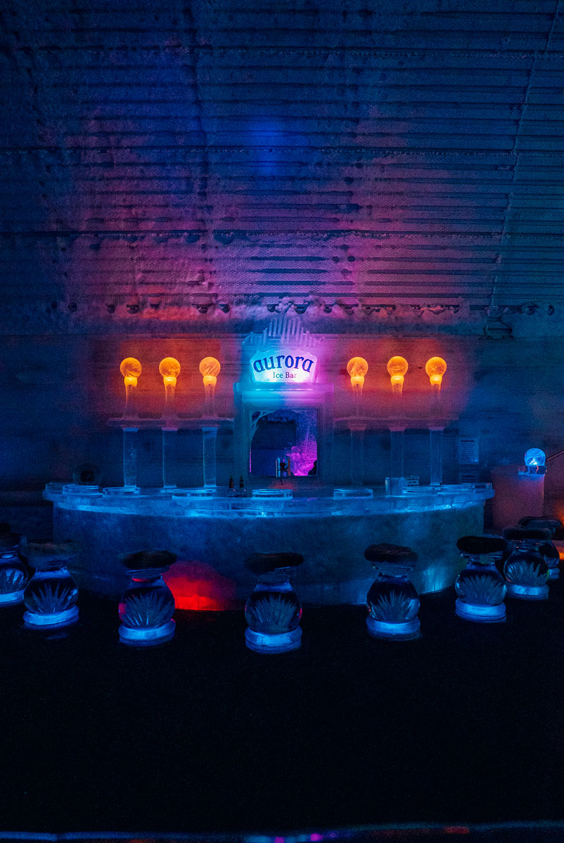 You’re given a winter coat when you arrive and invited to cozy up to the bar for one of their signature Appletinis – aka straight Apple Pucker and vodka. The appletinis are served in an actual ice glass which makes the $15 cocktail price totally worth it.