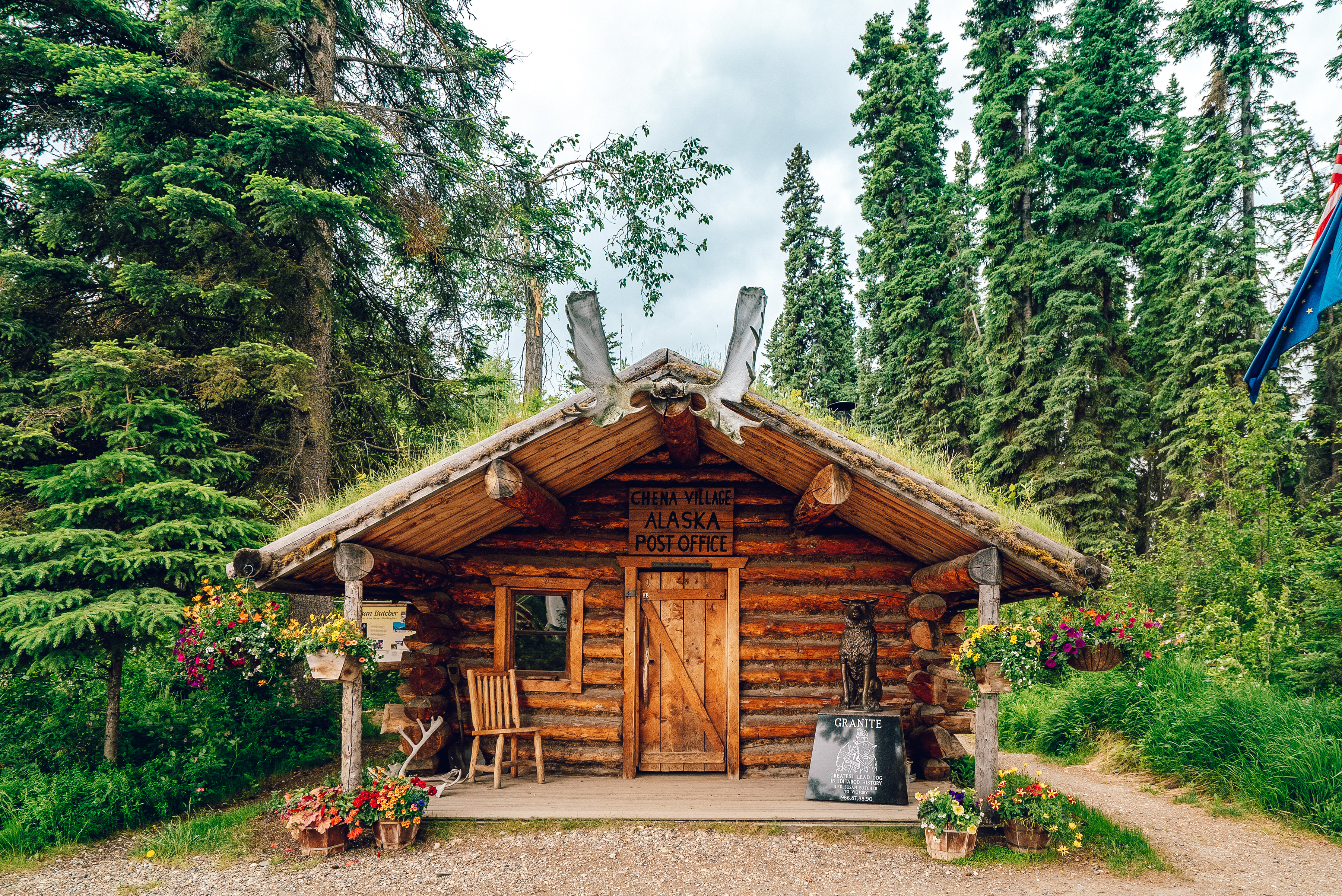 Near the Fairbanks Visitor’s Center is a popular photo op – the famous antler arch. The arch is made up of over 100 sets of antlers from all over Interior Alaska.