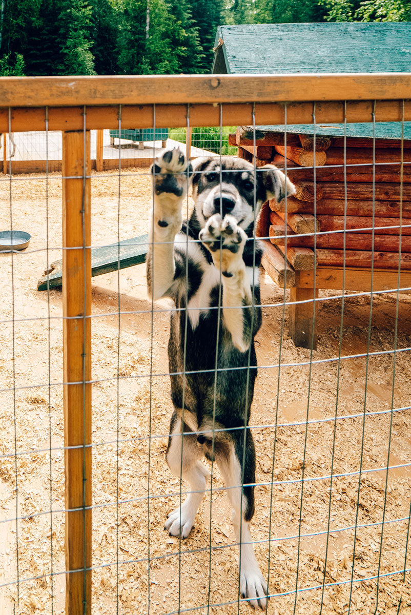 A trip to Fairbanks isn’t complete without meeting a few sled dogs. These working animals are literally born to run. They’re full of energy and you can tell that they love every minute of their work running and pulling sleds. Visiting the Paws for Adventure Kennel was such a treat. Even though we missed the opportunity to sled, a summer visit means puppies!! These sled dogs in training are already getting started by learning to socialize and follow the pack.