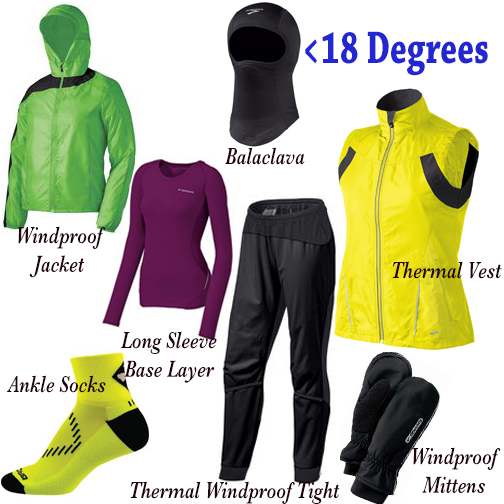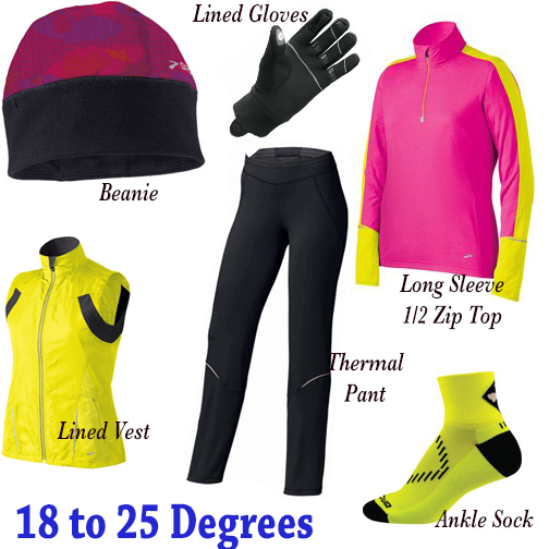 Without further ado, here is what I wear for all different types of weather, with links to the Brooks website for you to check out the clothes for yourself.